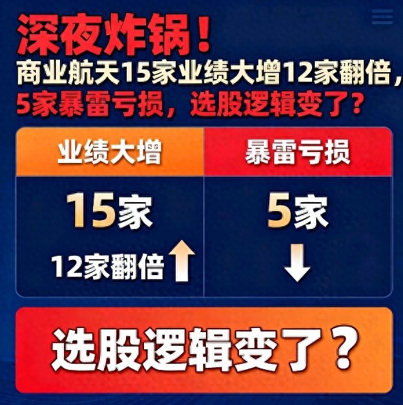 核心问题直接抛:商业航天板块一边是12家企业利润翻倍的狂欢,一边是5家公司大额亏损的冷清,现在该跟风布局还是避坑离场?